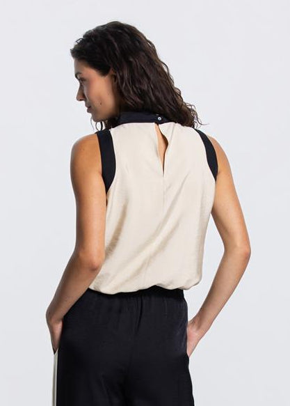 Jansen Amsterdam Paisley mouwloze blouse in Klei / Zwart