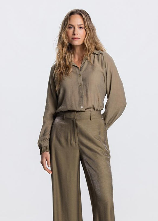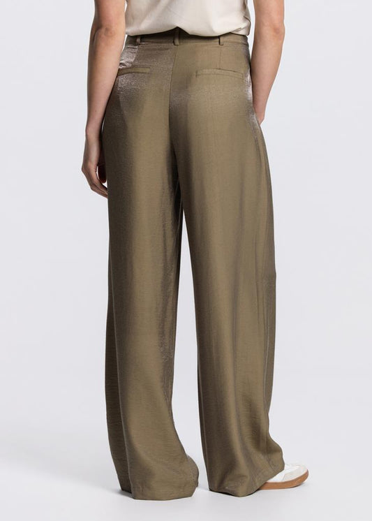 Jansen Amsterdam Dara glanzende pantalon in legergroen