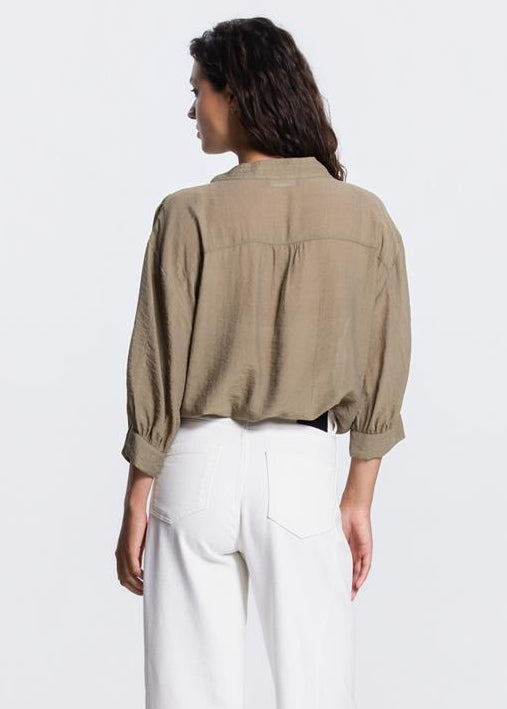 Jansen Amsterdam Ollie blouse met elastische boorden in Legergroen