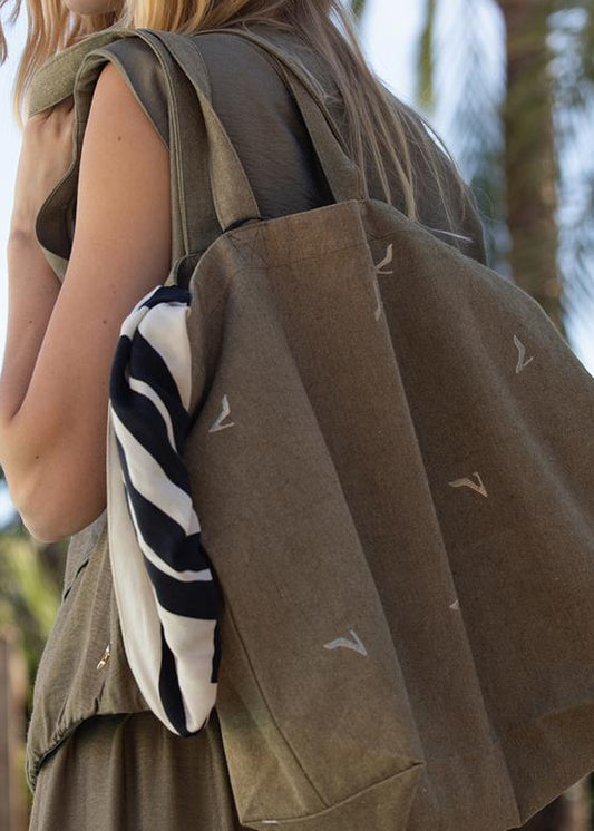 Jansen Amsterdam BAG Tote Bag in legergroen met Geborduurde Hakjes